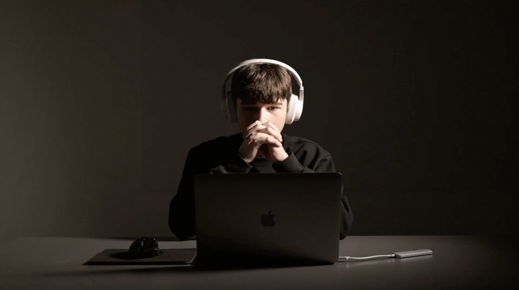 J’ai donc commencé par créer un concept. J’ai pris pour exemple un joueur de jeux vidéo : il lance des parties en boucle sans s’arrêter puis, au moment d’accepter une nouvelle partie, il se remémore tous les moments négatifs des dernières parties avant celle-ci et prend la décision de refuser de jouer la partie.