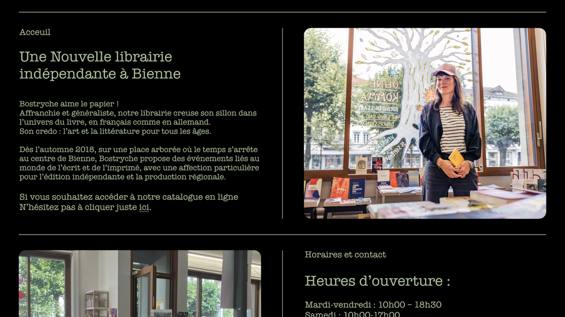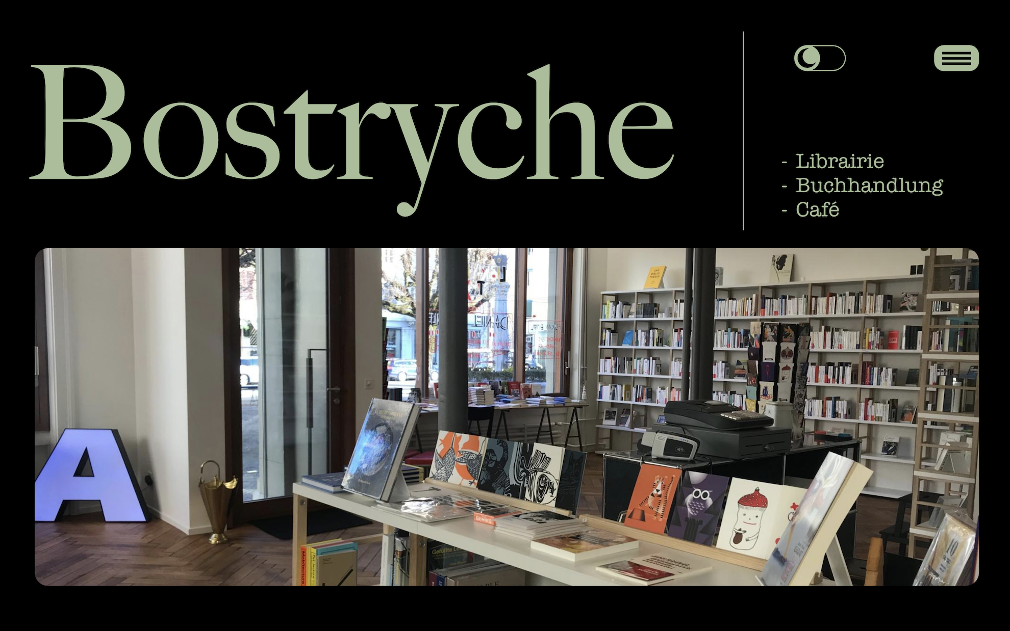 Dans ce projet, j’ai conçu un design de page web pour la librairie « Bostryche » de Bienne. Je me suis basé sur la façade de la librairie pour structurer mon site.