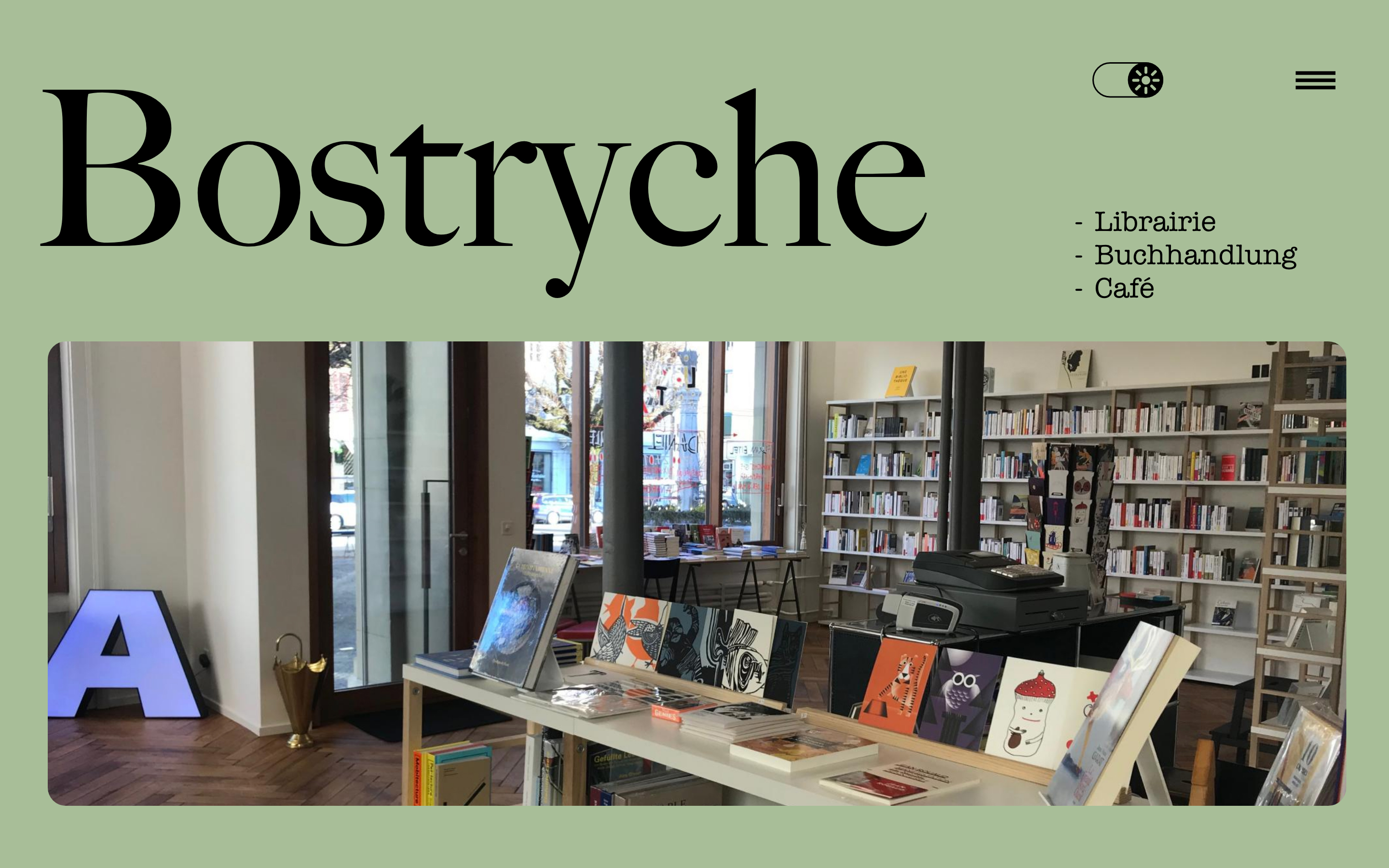 Dans ce projet, j’ai conçu un design de page web pour la librairie « Bostryche » de Bienne. Je me suis basé sur la façade de la librairie pour structurer mon site.